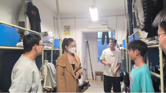 检查人员分成两个小队进行检查,从公寓的卫生干净整洁程度、有无违规电器,桌面及垃圾清理,及时给宿舍通风等几个方面进行了评分与评价。