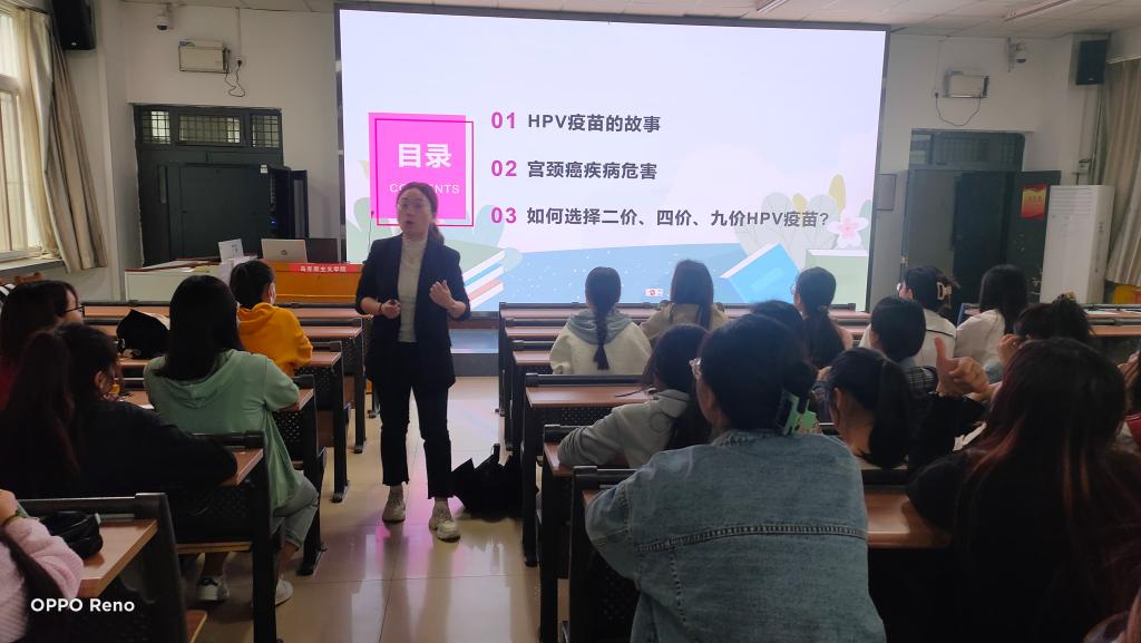 近年来,我国宫颈癌发病的年轻化趋势十分明显,这警示着青少年女性要增强自身预防疾病的意识,养成良好的习惯,及时接种疫苗、定期进行筛查。今年1月,国家卫生健康委、教育部等10部门联合印发的《加速消除宫颈癌行动计划(2023—2030年)》要求,普及宫颈癌防治知识,降低患病风险,促进HPV疫苗接种;加强宫颈癌筛查服务,促进早诊、早治;规范接种宫颈癌(HPV)疫苗,加大医疗救治保障力度。本次“宫颈癌”防治知识及HPV疫苗接种注意事项专题讲座活动,授课内容结合实际、通俗易懂,不仅普及了宫颈癌疾病预防知识和HPV疫苗接种注意事项,突出和加强宫颈癌防治和HPV疫苗科普宣传,提高师生宫颈癌防控意识,将防治关卡提前、提高。(通讯员 王鹏 审核人 段楚雷)