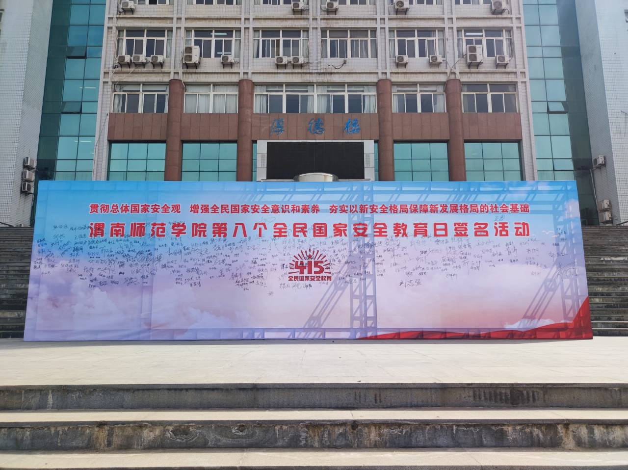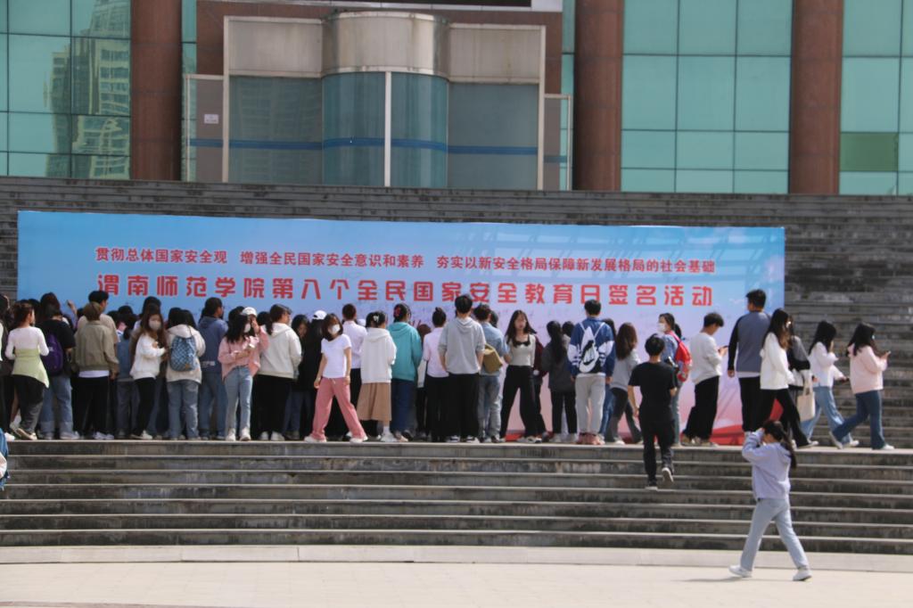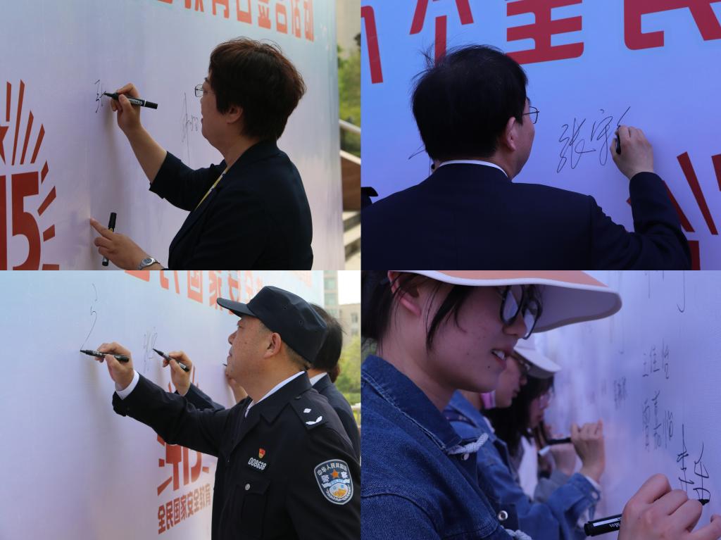 活动现场与会领导为师生发放了《国家安全应知应会手册》《防范邪教宣传手册》《公民举报危害国家安全行为奖励办法》等宣传资料,与会领导、现场师生代表在签名墙上签名并参观主题宣传展板,现场气氛热烈。