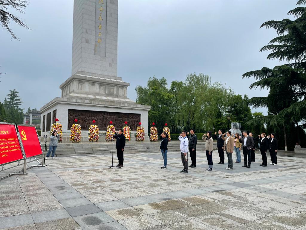 在渭华起义烈士纪念碑前,全体党员代表肃穆伫立,敬献花篮,向渭华起义先烈行三鞠躬礼,向革命先辈致以崇高敬意。党员同志在鲜红的党旗下,庄严宣誓,重温入党誓词,一字一句,自信而坚定。