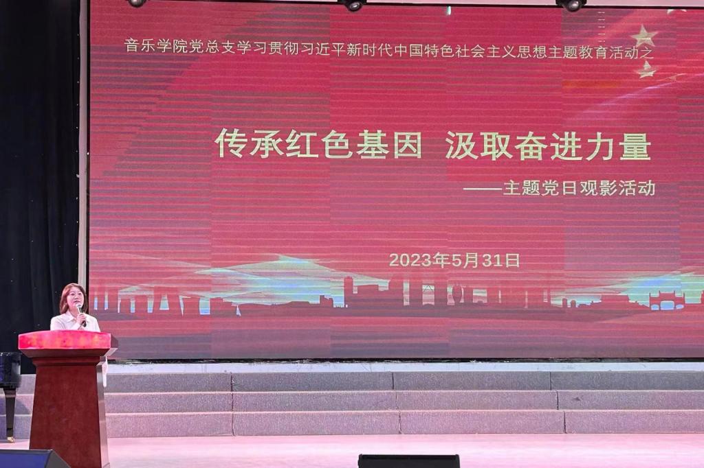 为深入开展学习贯彻习近平新时代中国特色社会主义思想主题教育,引领师生党员重温党的光辉历史,赓续红色血脉,5月31日下午,音乐学院党总支举办“传承红色基因 汲取奋进力量”主题党日观影活动,组织师生党员、发展对象、积极分子50余人观看了爱国主义教育影片《1921》,活动由音乐学院党总支副书记杨帆主持。