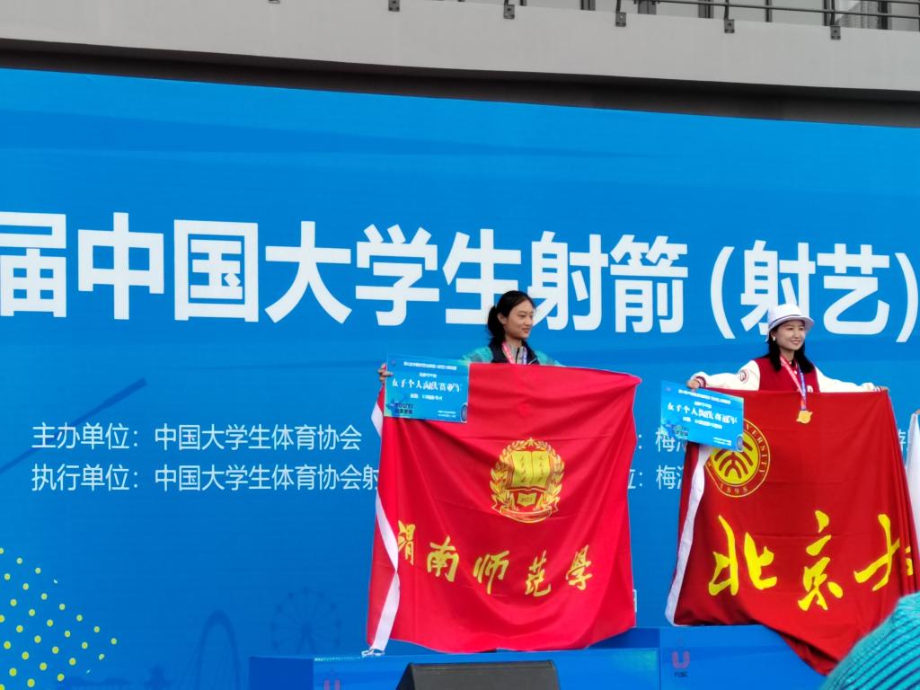 在校领导的支持和关心下,由今年会体育学院教师何小军任教练员,王婧欣、郭宜洁两名同学组成的代表队,与全国各大高校同台竞技。比赛历时三天,设传统弓个人和团体、反曲弓个人和团体等12个竞赛项目。经过激烈角逐,最终,王婧欣获得女子甲组个人排位赛第一名和个人淘汰赛亚军。