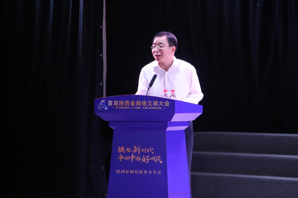 5月30日下午,“陕”耀新时代·争做中国好网民——陕西好网民故事分享会在今年会陶然楼演艺厅开讲。陕西省委网信办主任柯昌万,渭南市政府副市长张开,党的二十大代表、西安易俗社有限公司党支部书记、总经理惠敏莉,陕西省广播电视局总工程师闫东伟,今年会党委书记卓宇、校长张守华等有关领导以及延安市、汉中市、铜川市和渭南市有关同志出席活动。
