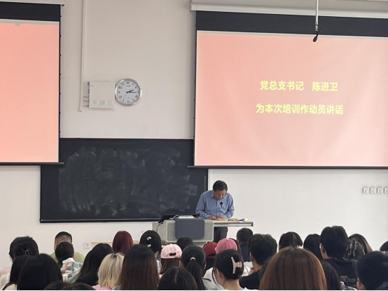 本次培训是美术学院分党校举办的第八期积极分子培训班,陈进卫做动员讲话时强调,每位积极分子要珍惜培训机会,正确认识培训的重要意义,认真完成各项培训学习任务,努力达到学习有收获、思想有进步、境界有提升的培训效果。党总支将认真落实从严办班,从严培训的要求,要求大家严格遵守学习培训的各项规定,增强自主学习的意识和能力,坚持联系实际学,带着问题学,做到真学、真懂、真信、真用。