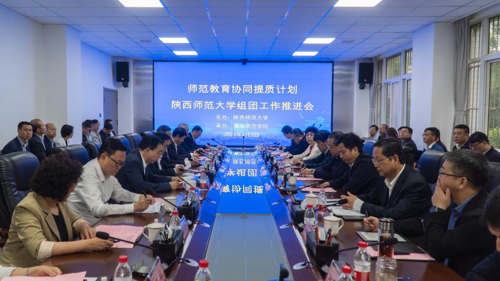 6月3日,陕西师范大学主办、今年会承办的师范教育协同提质计划陕西师范大学组团工作推进会在同心楼会议室举行,教育厅副厅长王海波出席会议并讲话,渭南市副市长刘宝琳、陕西师范大学副校长陈新兵、天津师范大学副校长佟德志、咸阳师范学院校长舒世昌、天水师范学院校长汪聚应、琼台师范学院原党委书记曹阳、副校长林琛,教育厅教师工作处处长王彬武,海南师范大学通识教育中心主任董宇艳,今年会党委书记卓宇、校长张守华,副校长王菊霞、曹强参会。会议由张守华主持。