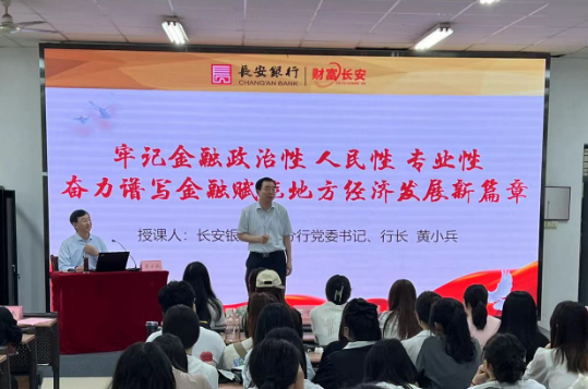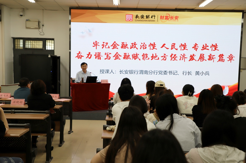 在《牢记金融政治性 人民性 专业性 奋力谱写金融赋能地方经济发展新篇章》的专题报告中,黄小兵行长从三方面做了系统分析。指出,要志存高远,砥砺前行,立志做有理想敢担当时代青年。他指出,要牢记习近平总书记对新时代青年的殷切希望,坚定不移听党话,跟党走,怀抱梦想又脚踏实地,让青春在全面建设社会主义现代化国家的实践中绽放;要扎根实践,培养财商,助力个人财富管理全方位提升。他详细讲述了理财的目的、中西方理财思维差异、如何进行科学的理财和资产配置等非常专业而又实用的金融知识;要初心不改,矢志不渝,聚焦地方经济社会高质量发展。他介绍了长安银行的基本情况和主要经营指标,强调长安银行在凸显金融机构政治性和人民性中全力打造“责任银行、合规银行、智慧银行”,不断升级产品体系、深化政银合作支持实体经济、推进县域特色经济支持乡村振兴等。他还详细介绍了不良校园贷、非法集资等同学们经常遇到的校园金融风险。他希望大家积极行动起来,预防金融诈骗,共建和谐校园。最后,黄小兵还鼓励广大青年学生,珍惜在校学习时光,保持终身学习,也表示欢迎大家到长安银行实习培训,通过实践内化理论,不断增强自身综合素质。
