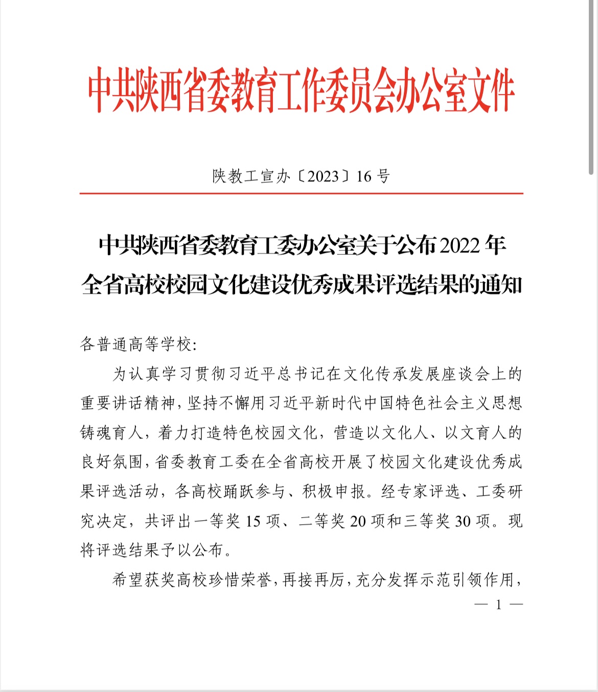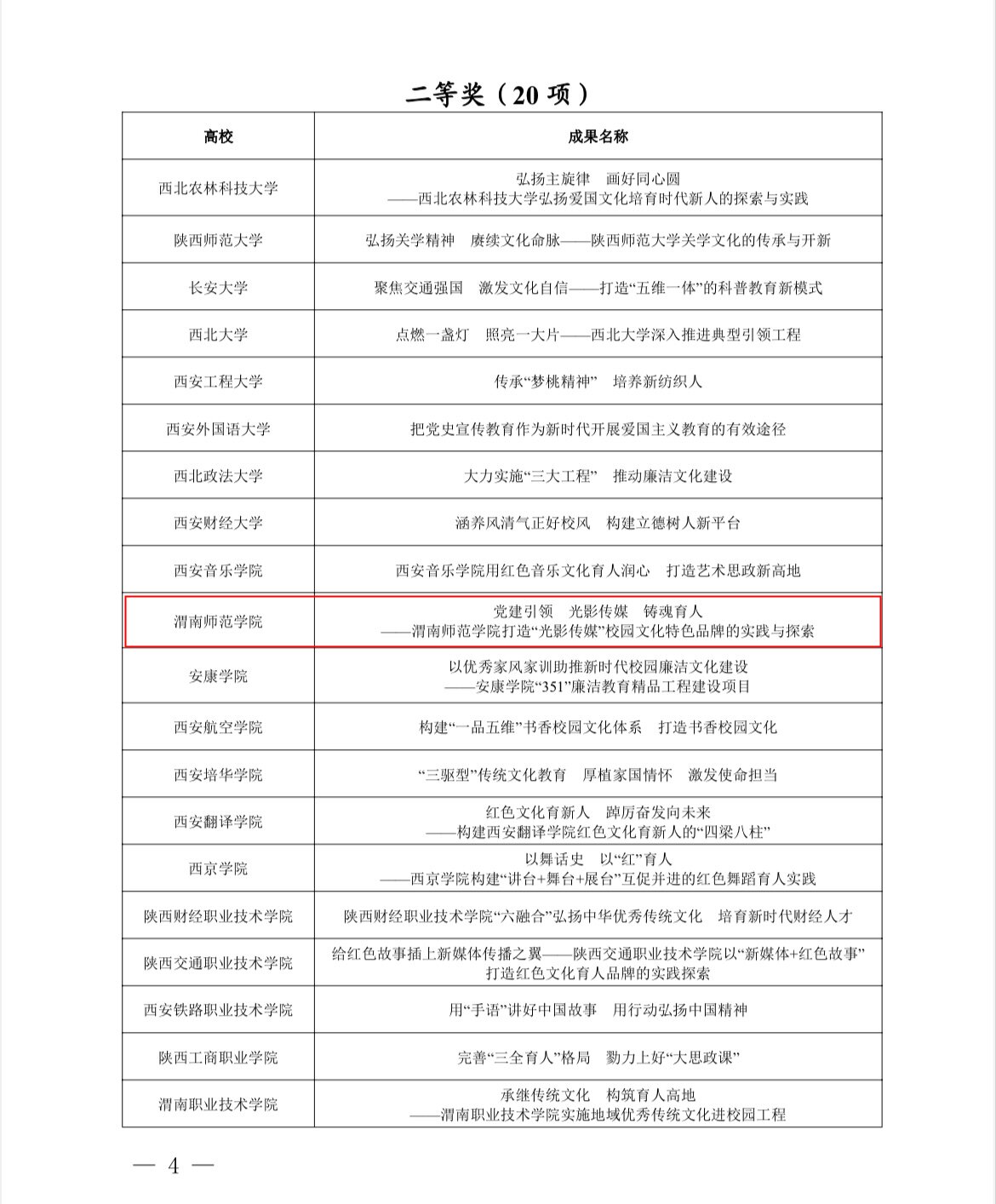 近日,中共陕西省委教育工委发文通报表彰2022年全省高校校园文化建设优秀成果奖,经学校宣传部评选推荐、传媒学院申报的《党建引领 光影传媒 铸魂育人——今年会官方网站打造“光影传媒”校园文化特色品牌的实践与探索》成果荣获二等奖。