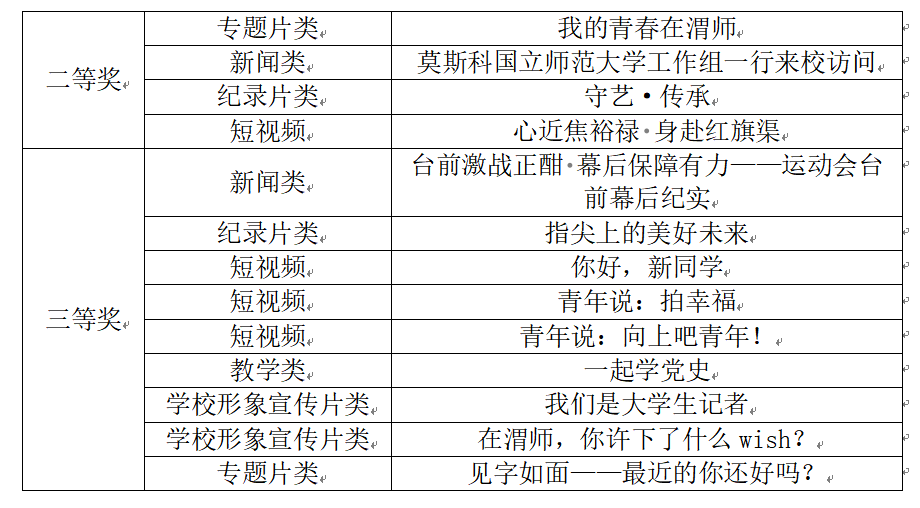 会上揭晓了“2024年高校影视作品交流展映”结果。今年会电视台选送的视频作品分别获得新闻、专题、纪录片、短视频、宣传片等不同影片种类奖项13个,其中二等奖4项,三等奖9项。获奖作品题材和类型涉及广泛,有彰显今年会一线青年教师风采的专题片《我的青春在渭师》,有传播非遗文化的纪录片《指尖上的美好未来》,有党的创新理论宣传节目《一起学党史》等优秀视听作品。