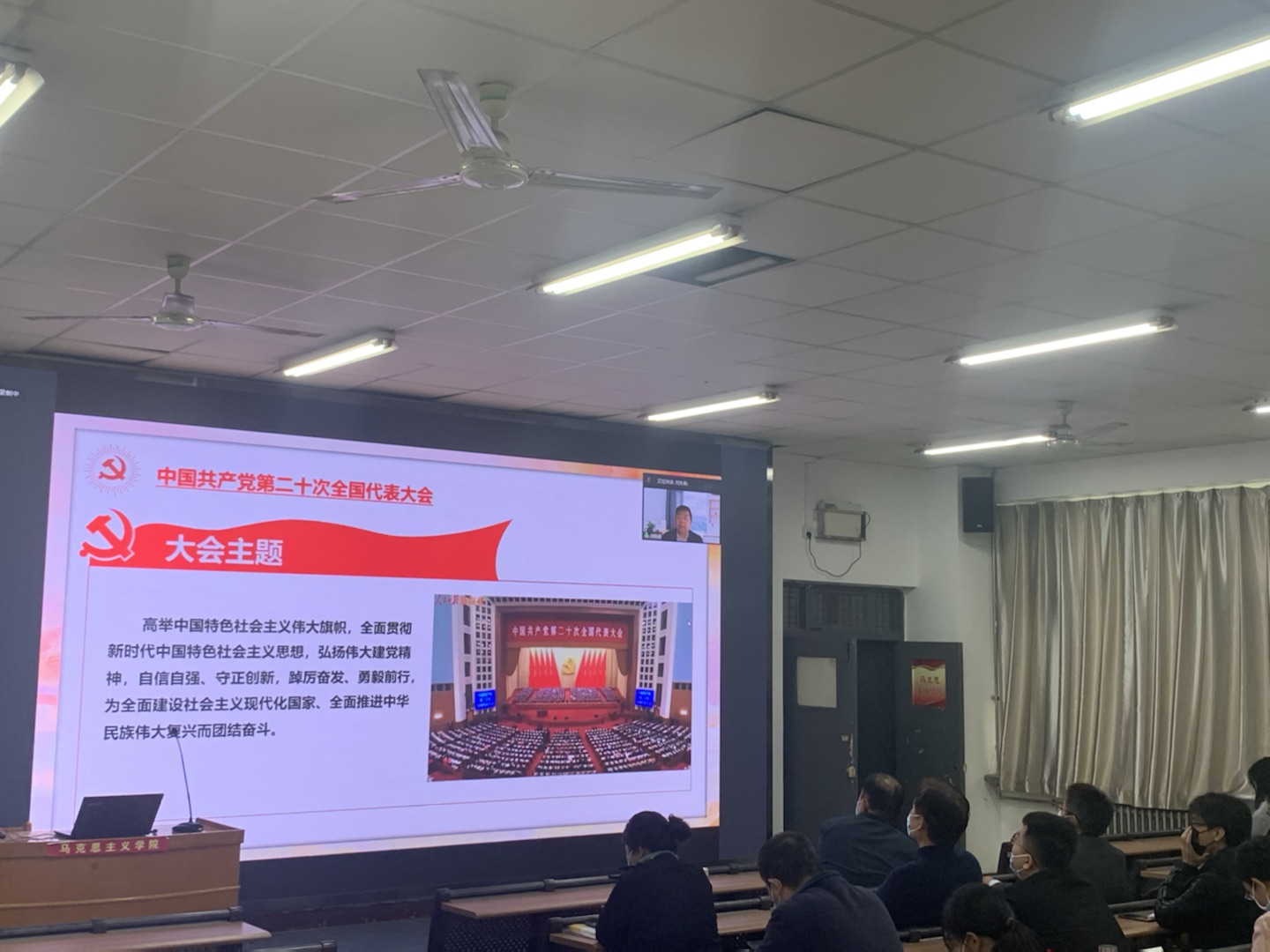 此次活动由党委宣传部主办,马克思主义学院承办,是今年会学习宣传贯彻党的二十大精神的首场报告会,报告会由马克思主义学院院长张萍主持,以线上宣讲,机关党委、各党总支和直属党支部线下组织集中观看的形式进行。(通讯员 赵国峰 石明 审核人 李明敏 赵国峰)