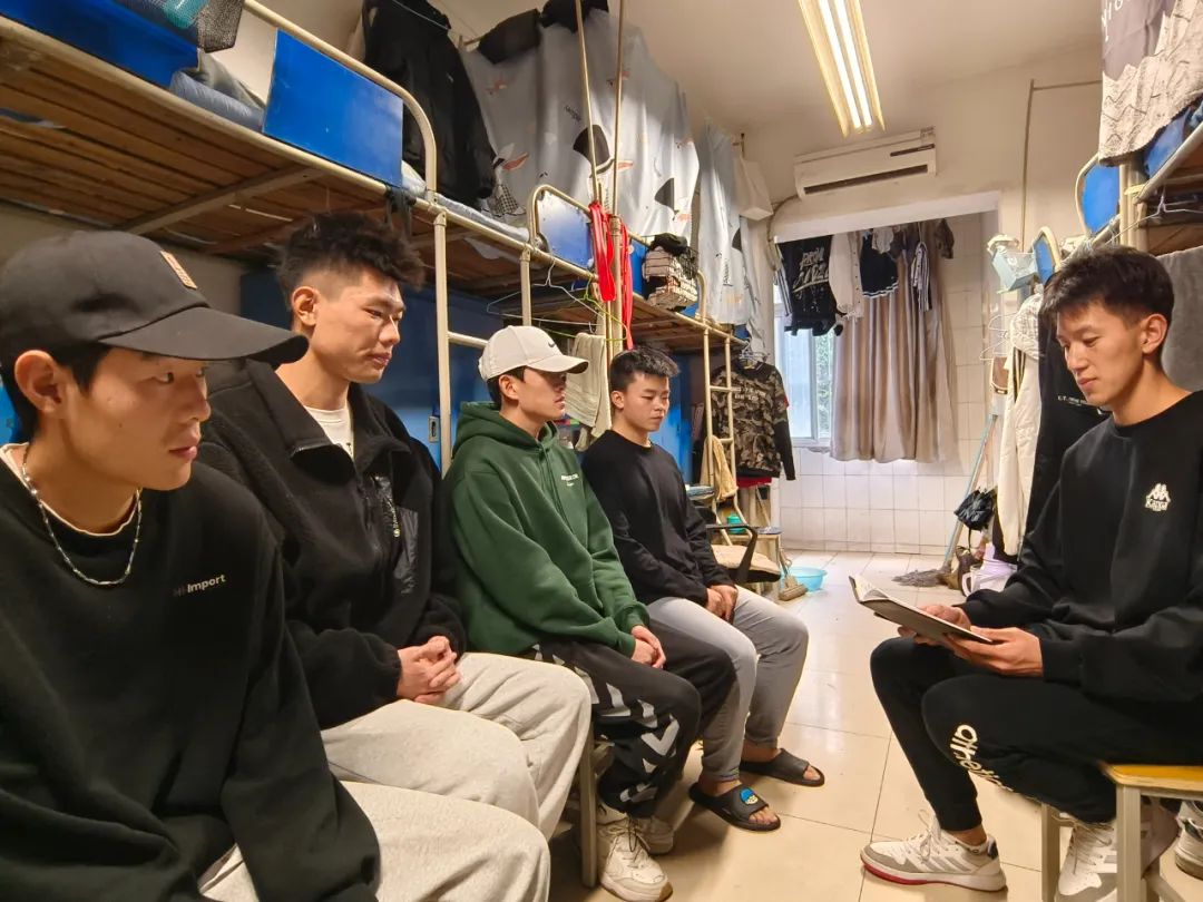 10月28日下午,体育学院党总支书记李春兰,党总支副书记闵雄飞,学工办主任朱颖妮,团总支部书记王斌和2022级辅导员李欣泽深入到包联的七号公寓楼宣讲党的二十大精神,开展党建进公寓活动。