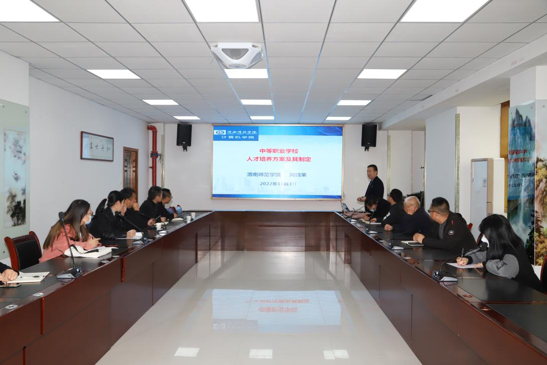 推进会结束后,计算机科学系同晓荣主任为澄城县职业教育中心教务处、实习处、教科研室负责人及专业部长做了专业建设专题培训。