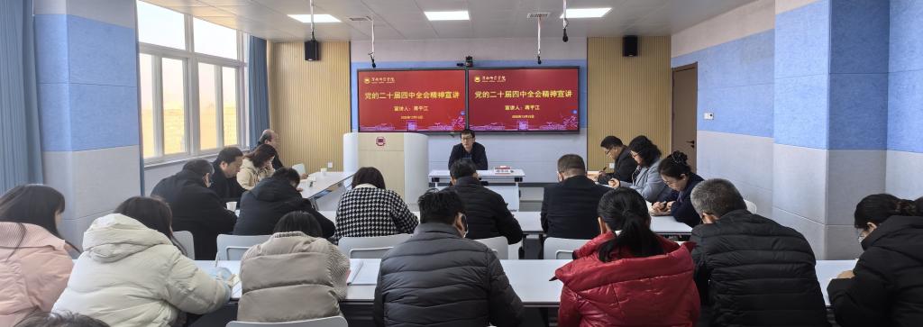 12月17日下午,党委副书记常青林在厚德楼31002室为师生代表作党的二十届四中全会精神宣讲。学生工作部部长田耿辉主持宣讲报告会。