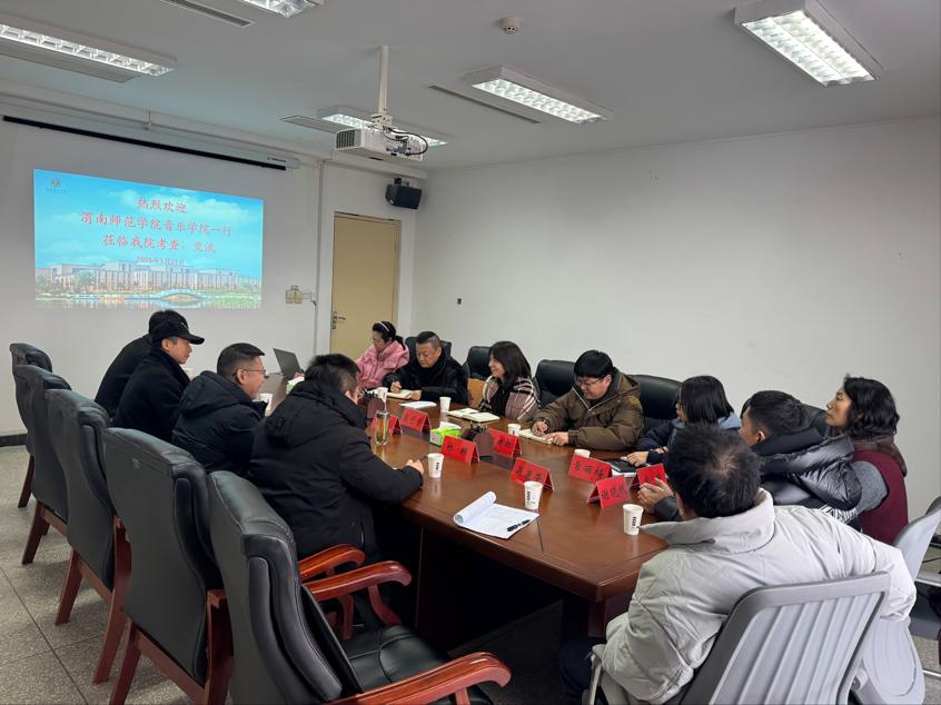 1月21日下午,音乐学院院长刘鹏带队,音乐表演专业负责人林颖、舞蹈学专业负责人苏力等一行5人赴洛阳师范学院音乐学院开展专题调研。洛阳师范学院音乐学院院长高彩荣、副院长杨熠及相关负责人热情接待并座谈。