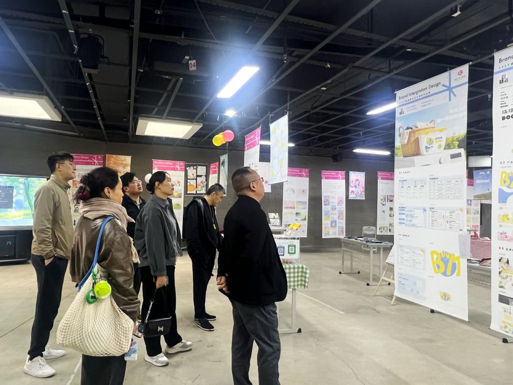 在深圳大学美术与设计学院,调研团队参观了教学成果展,深入了解了该校“展览即课堂”的实践教学模式。