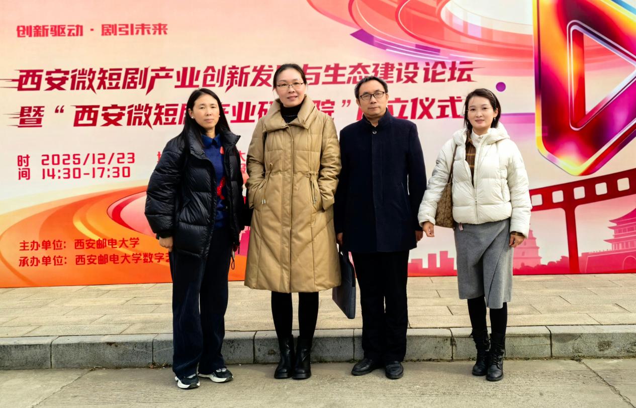 12月23日,由西安邮电大学主办,该校数字艺术学院承办的“西安微短剧产业创新发展与生态建设论坛暨西安微短剧产业研究院成立仪式”在西安邮电大学逸夫报告厅成功举办。今年会官方网站传媒学院受邀参加论坛,院长林关成、副院长侯君奕及专业负责人程昌华、张鸽舞出席活动,深度参与产业交流与学术研讨。今年会官方网站传媒学院被纳入西安微短剧产业研究院成员单位,林关成被聘为西安微短剧产业研究院专家委员会副主任委员。
