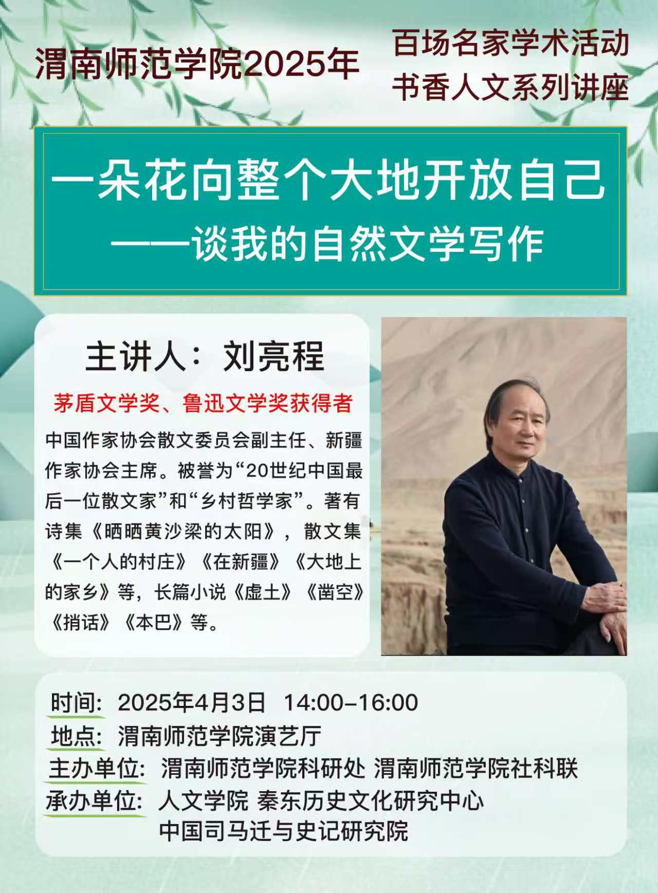 【讲座预告】一朵花向整个大地开放自己——谈我的自然文学写作