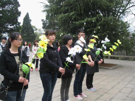 2012年3月29日中午十二点,中共武汉长江工商学院经济与商务外语学院学生第七党支部组织60余名学生党员以“继承民族优良传统 弘扬英雄奉献精神”为主题举办了一次向英雄敬献花篮的扫墓活动。