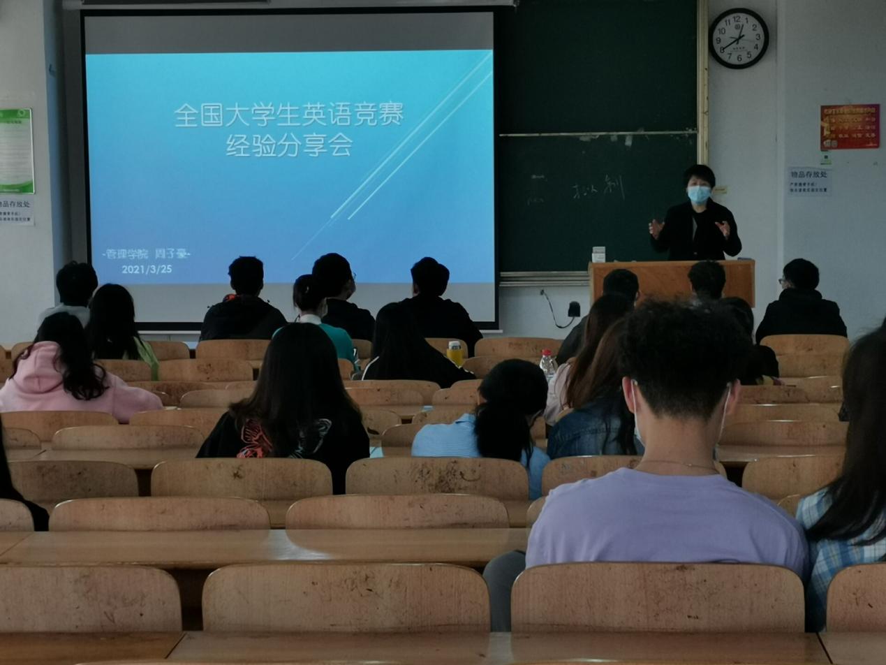 会后,黄萍老师、周子豪同学及有意参加2021年全国大学生英语竞赛的学生们进行了备赛及参赛经验交流。本次分享会为我校英语学习爱好者在英语学习的方式方法及参赛经验等方面提供了交流平台,学生代表激励了更多参赛学生突破自我、积极应赛。在一定程度上提升了我校学生参加英语竞赛等活动的积极性。