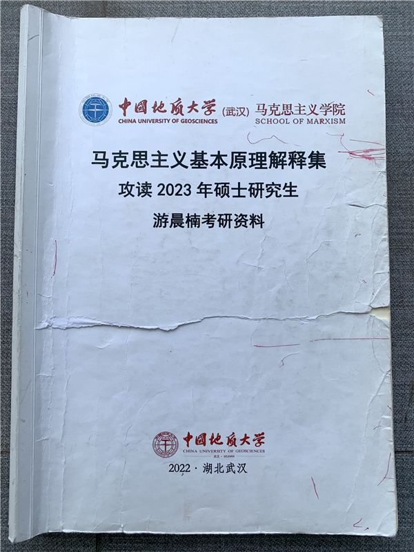 图为被游晨楠翻烂的考研资料