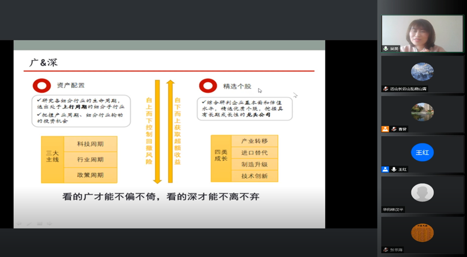 经济与商务外语新闻中心讯(记者 刘炫)2022年3月19日上午,金融市场发展前沿系列讲座第五十期讲座在线上顺利举行。本次讲座邀请到华商基金权益基金经理吴昊博士担任主讲嘉宾,她以“强国之始 高装其时——高端装备制造业的投资思考”为主题进行了精彩演讲。华中科技大学经济学院国际经济与贸易系周记顺老师担任本场点评嘉宾。