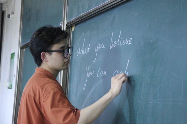 谈洋是一个阳光帅气、开朗热情的大男孩。因为热爱英语,也喜欢交朋友,初入校园,他便加入了学校的英语俱乐部。通过在俱乐部的努力学习和实践,3年时间,他从部员一路成长为口语部部长、副会长,不仅英语水平不断提高,拿到了中小学英语教师资格证,一次性通过大学英语六级考试和英语专业四级考试,而且通过策划开展各类英语比赛、志愿服务等活动,组织策划能力也得到了大大提升。