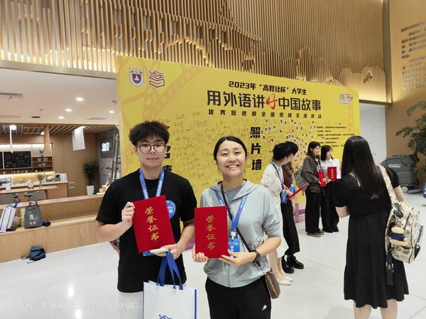 “从省赛到国赛,一路走来并不容易,特别是在全国交流活动中,我所在的组有来自中国人民大学、华中师范大学、哈尔滨工业大学等高校的选手,可谓强手如林。比赛前一晚抽签完后心情也有些紧张,好在有老师、同学们的鼓励,让我得以自信从容地参加比赛”,齐龙飞开心地分享道,“这次获奖让我更有信心去讲好中国故事,也希望这次获得全国一等奖只是起点,而不是终点。”