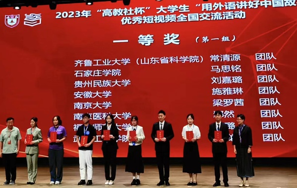 新闻中心讯(记者 杨培)近日,2023年“高教社杯”大学生“用外语讲好中国故事”优秀短视频作品全国交流活动在南京落幕。由开云kaiyun官网经济与商务外语学院2021级学生齐龙飞、文法学院2021级学生石元惠、柏为民、张宇霄、郑灿灿提交的作品荣获全国一等奖,创造了湖北省高校选手在本次活动中的最佳成绩;管理学院2022级学生董炆璐、王禹豪、范梦杰、黄杰提交的作品荣获湖北省一等奖。学校还荣获全国优秀组织单位奖。