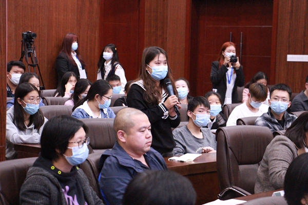 (图为:在场学生正在提问)