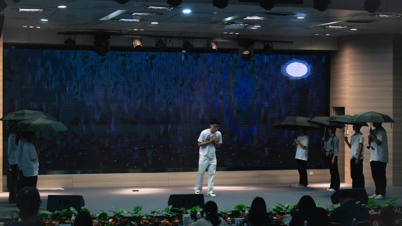 为在大赛中展现最佳风采,13 名参演学生在指导老师田飞燕、张子菡老师带领下全力筹备。创作时聚焦青春成长中的抉择困境,将主角林风在“考研升学”“都市就业”“乡村支教” 间的迷茫,以及外界压力与内心矛盾融入剧情,呼应现实学生的处境,引发共鸣。排练过程中,师生们争分夺秒,利用课余碎片时间,参赛学生不断打磨细节,逐字推敲台词、反复雕琢动作,在决赛舞台上用极具感染力的表演,将青春面临抉择时的复杂情感诠释得淋漓尽致,引发全场强烈的情感共振。