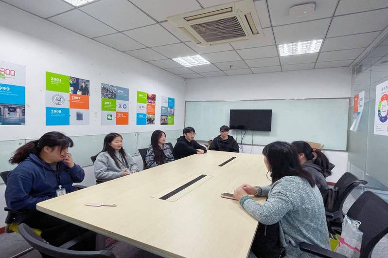 实习是理论对接职场的关键桥梁!在昆山华泛,走访小组看着英语专业的同学们戴着耳机,快速响应客户咨询、细致记录诉求、耐心化解投诉,全程见证他们娴熟的沟通技巧与问题解决过程;在杭州宝盛、水博园酒店,走访小组穿梭在前厅接待台、客房与会务中心,看着参加实习的同学们有条不紊办理入住退房、细致整理客房、灵活协调会议布置,近距离感受他们对服务规范的掌握与应急处理的表现;国际经济与贸易专业的同学忙着商务对接,我们也特意翻看了他们的订单台账和商务邮件,了解他们与合作方的沟通衔接情况。三天里,我们不仅逐一查看同学们的工作环境与操作流程,还和企业人力总监、主管及指导师傅开专场座谈会,仔细询问大家的适配度与表现,认真收集人才培养建议;更趁休息时间与每位同学一对一暖心访谈,倾听他们的收获与困惑、压力与成长,翻阅实习考核表、日志和成果档案,全方位摸清大家的实习真实状况。