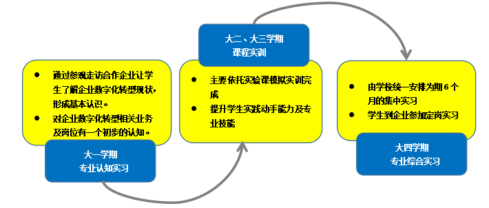 作为一所应用型本科院校,为培养应用型人才,学校坚持实践教学贯穿大学四年。我们强化实践教学,大一安排专业认知实习;大二、大三安排校内项目实训,大四安排专业综合实习