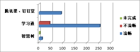 其中智慧树共17个课堂,流畅的有13个课堂;学习通共296个课堂,流畅的有252课堂,不流畅的有44课堂;腾讯课堂和钉钉课堂共92个课堂,均流畅。