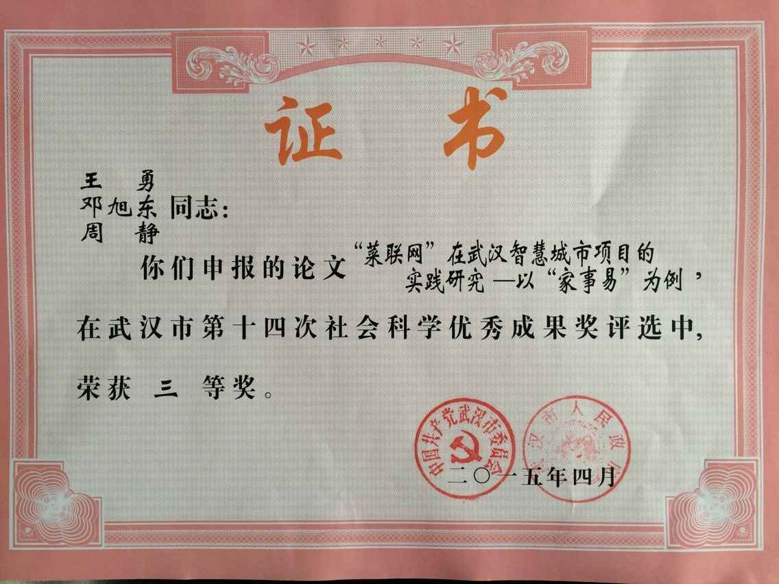 武汉市第十四次社会科学优秀成果奖三等奖