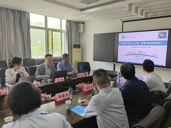 图为李明主任介绍学校实验教学中心的发展情况
