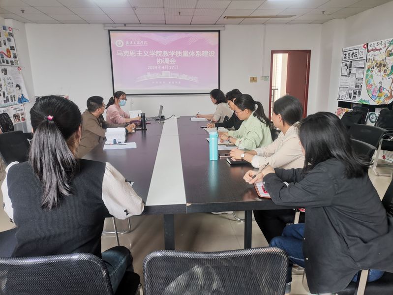 (通讯员 姜倩)2024年4月17日14:00,马克思主义学院在1102会议室召开了教学质量体系建设协调会。本次会议由教学副院长张桂芳主持,副院长艾萍及各教研室主任参会。