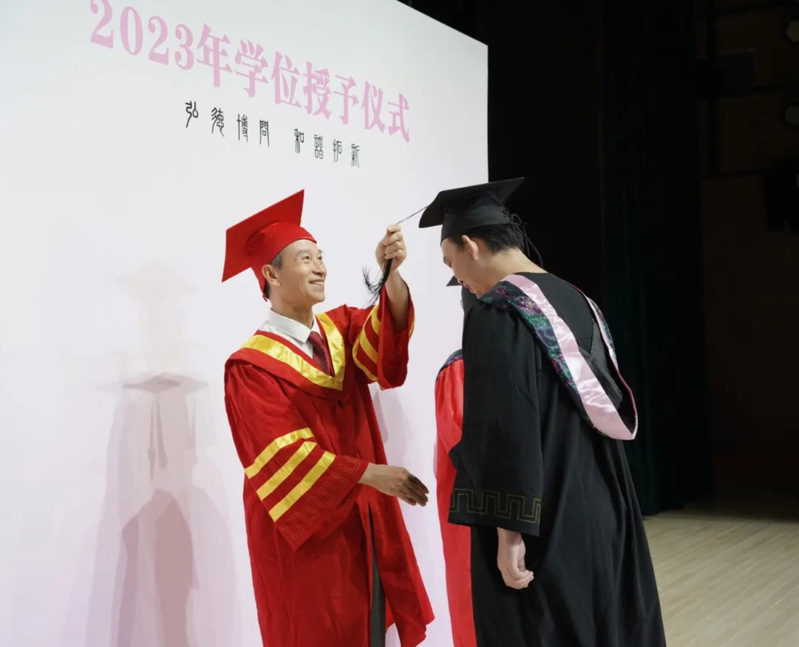 △孔建益校长在毕业典礼上为学生拨穗