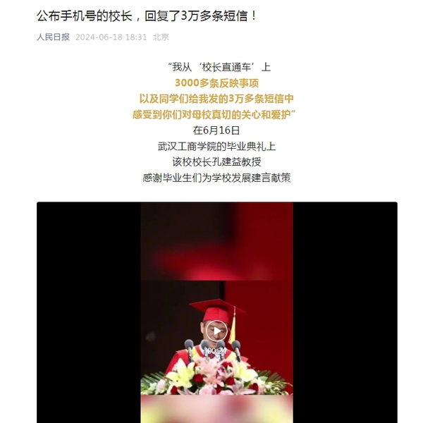 孔建益校长共收到3万多条短信