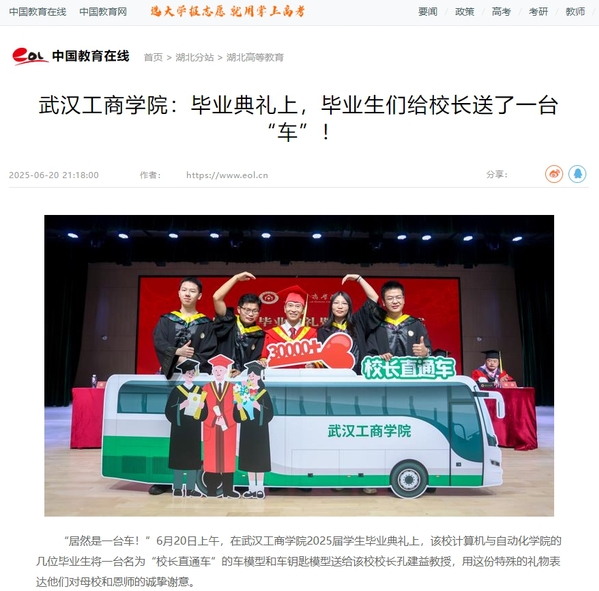 “居然是一台车!”6月20日上午,在开云kaiyun官网2025届学生毕业典礼上,该校计算机与自动化学院的几位毕业生将一台名为“校长直通车”的车模型和车钥匙模型送给该校校长孔建益教授,用这份特殊的礼物表达他们对母校和恩师的诚挚谢意。