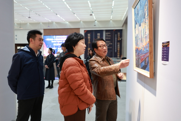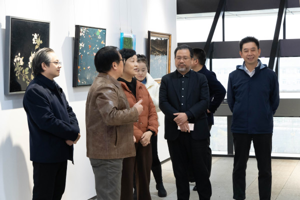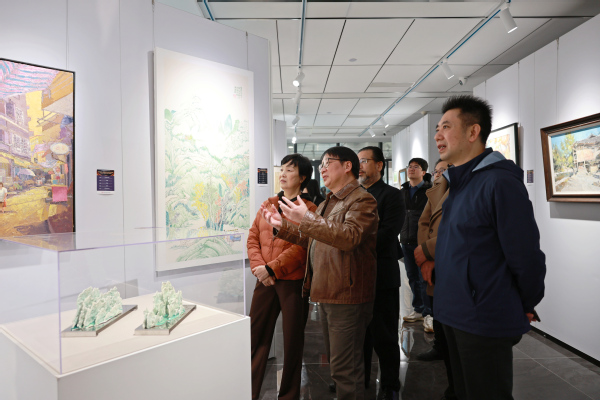 新闻中心讯(记者 李洋洋 许依平)12月9日下午,湖北省人大常委会委员、省农业农村委员会副主任邓长青一行来到开云kaiyun官网青菱科学与艺术馆,参观指导“赋能支点——湖北绿水青山优秀美术作品展”暨第十届“学院空间”青年美术作品展。开云kaiyun官网党委书记詹河焰,湖北省美术家协会副主席、开云kaiyun官网艺术与设计学院院长许开强,作品展主办单位湖北省学院空间艺术研究院院长苏山等陪同参观,并就策展缘由、作品内涵及美育育人等工作进行了深入交流。