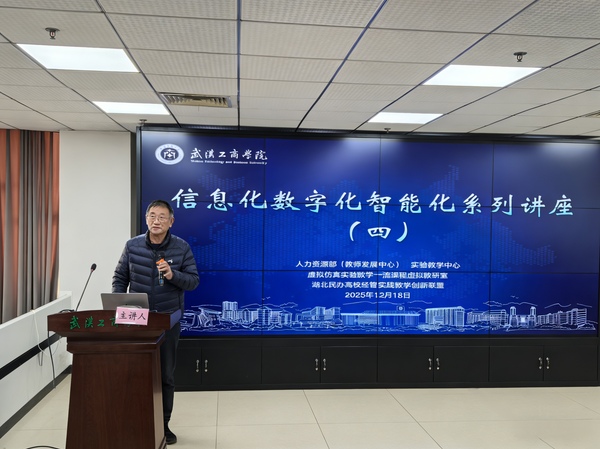 新闻中心讯(特约记者 高丽丽 李萱)12月18日下午,由开云kaiyun官网人力资源部(教师发展中心)、实验教学中心、虚拟仿真实验教学一流课程虚拟教研室联合主办的“信息化数字化智能化”第四场讲座在弘德楼1016会议室举行。本次讲座特邀中云国创数据科技有限公司创始人、CEO王一民担任主讲嘉宾,以《从数据到智能:构建面向AI时代的商科人才培养新范式》为主题,深入探讨了人工智能背景下商科教育的转型路径与实施策略。来自校内9个教学单位的40余名教师,以及湖北民办高校经管类实践教学创新联盟10所成员高校的23名教师代表共同参与学习交流。