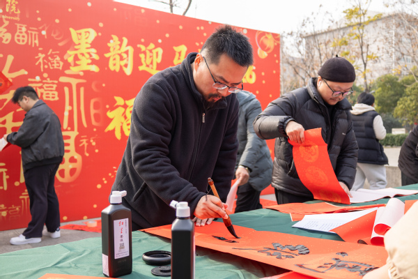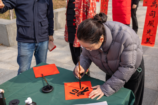 学校党委书记詹河焰、副校长赵北平、巴能强也来到师生中间,俯身提笔,共同书写“福”字,并向大家送上暖意融融的新年祝福。现场笑语不断,墨香与浓浓年味交织。