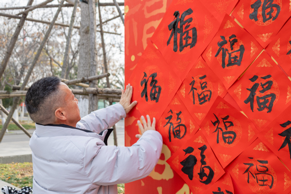 笔走龙蛇间,红纸黑字流淌出吉祥与祝福,一个个生动饱满的“福”字跃然纸上,一副副寓意美好的春联承载着新岁期盼。现场特设的书写体验区与“百福图”集体创作区,也吸引了众多师生驻足参与,有人凝神临摹,有人畅意挥毫,每一笔落纸都承载着真挚的新春心愿。