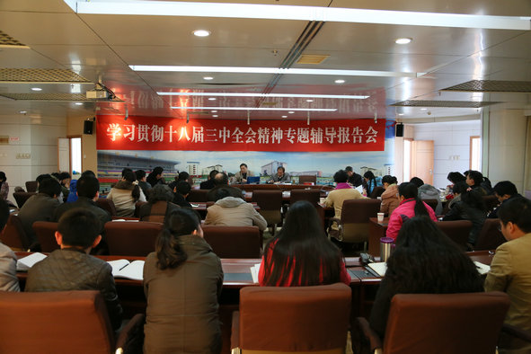 徐仲韬教授从“十八届三中全会概况和《决定》的重要意义”、“《决定》的特点”、“《决定》的主要精神和核心内容”三个方面全面解读了十八届三中全会的精神和《决定》的重要意义。