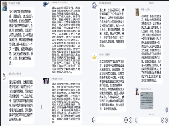 5月15日晚七点,人工智能学院通过QQ网络平台举行第五期党校培训班开班仪式。学院党总支书记吴茜、分团委书记肖宁、学生党支部书记吴雅雅老师和吴佳曦老师以及40名入党积极分子参加了开班仪式。肖宁老师向学员们简要介绍了培训班的情况,本期培训分为课程学习、交流研讨、撰写思想汇报和在线结业测试四个环节,培训结束后将按照每个环节完成情况对学员进行综合评定。希望大家珍惜学习机会、严守学习纪律、力争学有所获。吴茜书记在开班动员讲话中说到,入党积极分子参加集中学习培训,是每一位要求进步的入党积极分子的必修课,也是接受党的教育的必然要求。希望同学们端正态度,充分认识党校学习的意义;明确目标,努力提高自身学习的效果;付诸行动,在学习和实践中做好表率。通过培训,切实提高自身的政治理论素养,增强党性锻炼,充分发挥入党积极分子先进典型和桥梁纽带的作用,早日成为一名合格的共产党员。