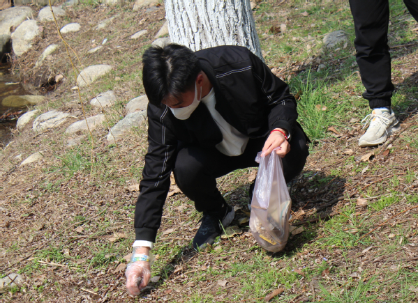 中午13:00,大家准时在静思湖东面集合,在领完袖章和垃圾袋等清扫工具后,大家便在各自负责的区域内,重点对烟头、纸屑、木板、包装袋、饮料瓶等垃圾进行了清理。清理过程中,大家热情高涨、不放过每一个角落,有些垃圾十分“顽固”嵌入在泥土里,队员们相互配合清扫“顽疾”。在大家的共同努力下,没过多久,静思湖周边环境焕然一新,变得十分干净和整洁。