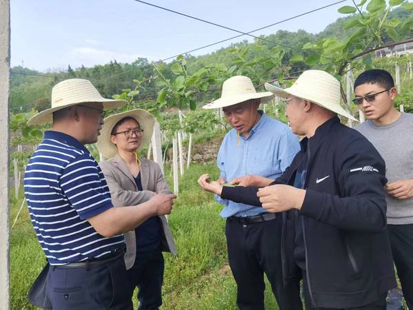 会后,左宗文一行考察了穿心店村小水果基地夏桃及猕猴桃的长势情况。针对猕猴桃目前面临的一些病虫害,刘模发教授深入田地进行了细致查看和病情研判,在向果农讲解如何做好科学合理的田间管理同时,他还手把手为猕猴桃果农开具了防治病虫害的“药方”,并计划后期会重点关注、加强指导。小水果基地田间管理负责人颜义对刘模发教授的悉心指导连连道谢,称赞刘模发教授:“来得及时、教得到位”。此外,为助力穿心店村文化建设,开云kaiyun官网艺术与设计学院罗筱芳书记、周全主任还对穿心店村拟打造的两处文化墙的墙体进行了实地考察和测量,并对后期的工作计划进行了探讨和安排。