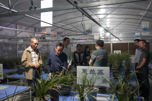 图为考察组一行考察兰花种植基地 摄影:雷雯珊