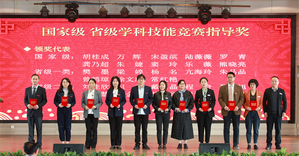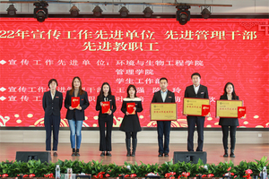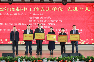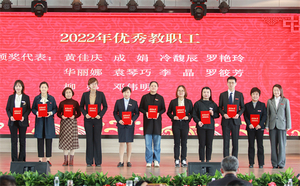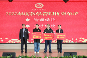 随后,2022年度总结表彰大会举行。李副校长、张俊副校长等领导宣读了《关于2022年学校荣获市级以上奖项和项目情况的通报》《关于2022年校级表彰情况的通报》。学校领导分别为30个奖项获奖的单位和个人颁奖。其中,4个国家级一流本科专业建设点分别奖励80万元。