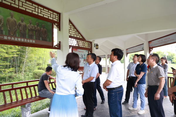 在讲解员的带领下,读书班成员首先来到廉园,逐一观看了记录“全面从严治党大事记”的清风长廊、高大的“廉”字立柱、红色校友许白昊雕像和融风景人文为一体的竹林等地,透过一张张图片,一个个碑文,追溯历史痕迹,深入学习武汉科技大学多年来的廉政建设成果和红色校友许白昊的清廉故事,全面回顾了中国共产党全面从严治党的大事记。