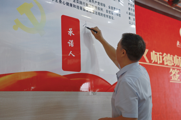 图为签订《师德师风承诺书》环节 摄影:芮雨欣